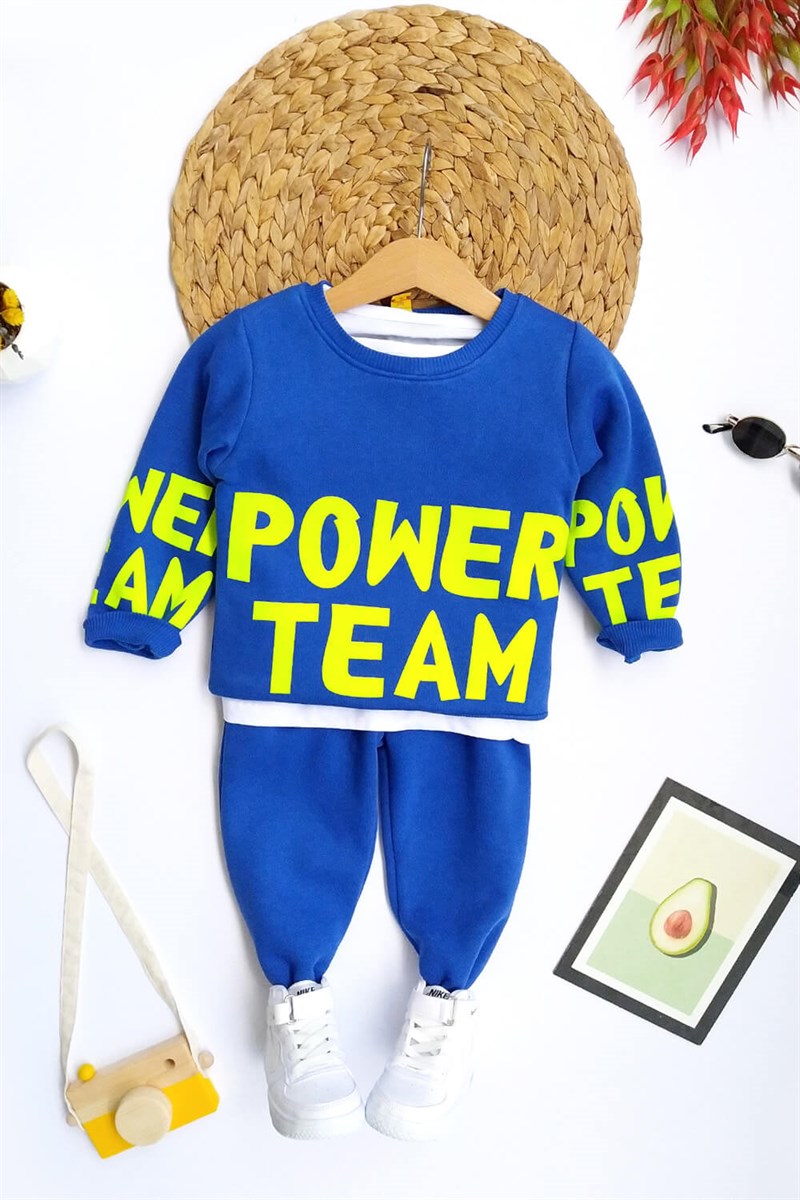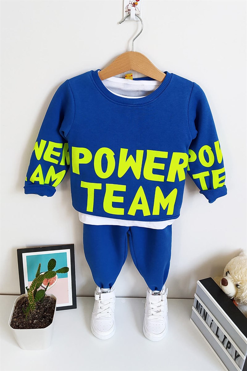 Power Team Baskılı Çocuk Sweat Takım Mavi