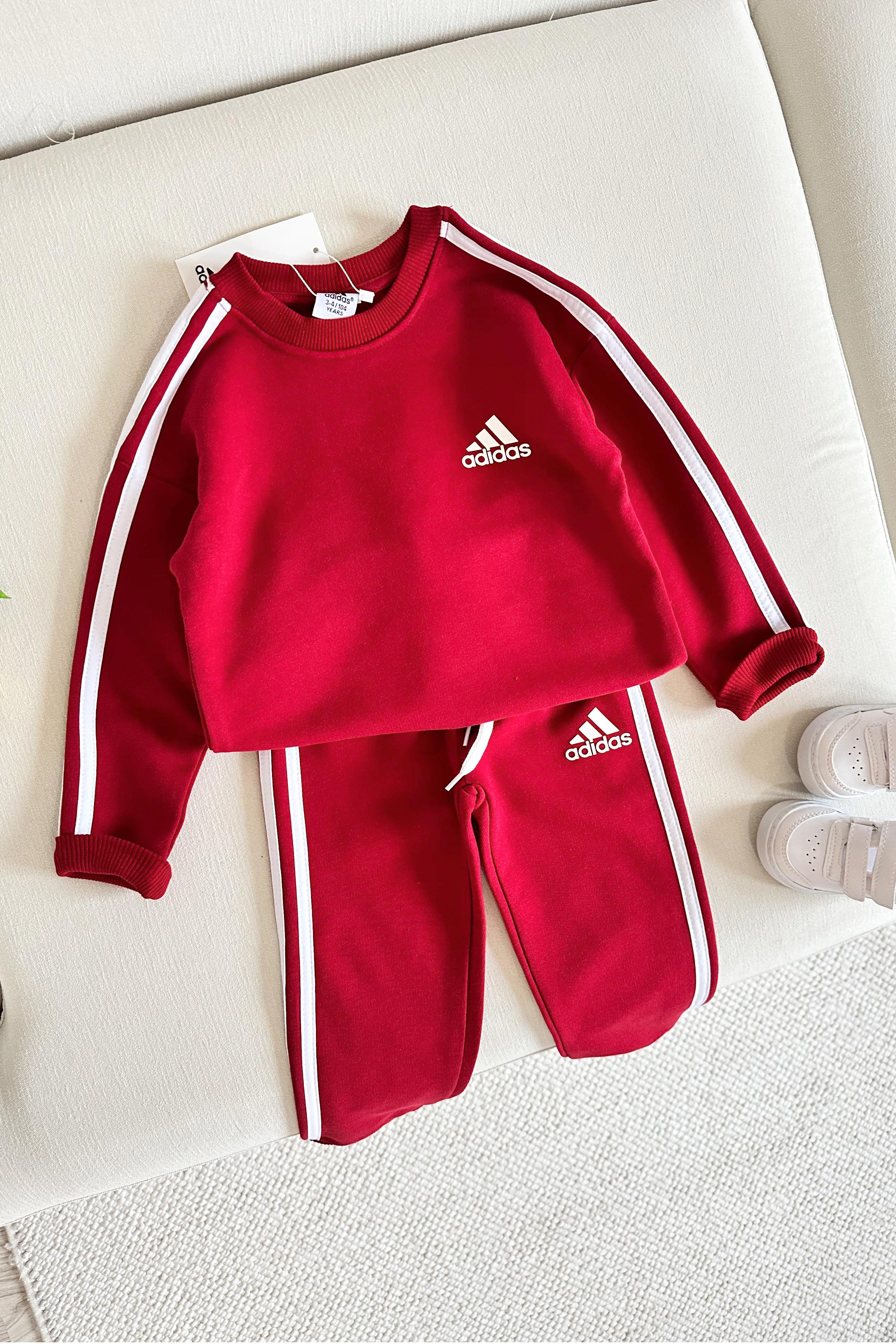 Yanı Çizgili Çocuk Eşofman Takımı Bordo Beyaz (BJ8054)